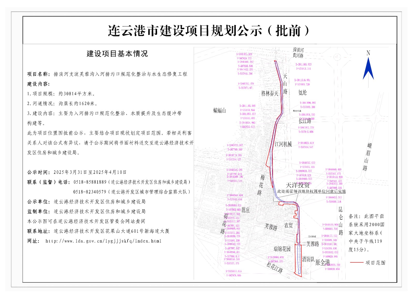 排淡河支流芙蓉溝入河排污口規范化整治與水生態修復工程項目位置圖公示(批前)