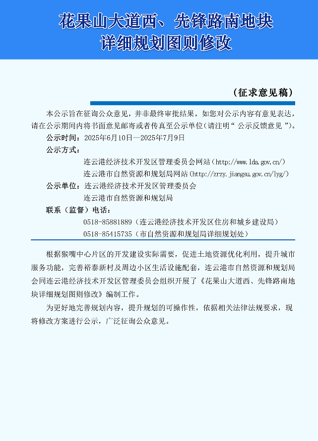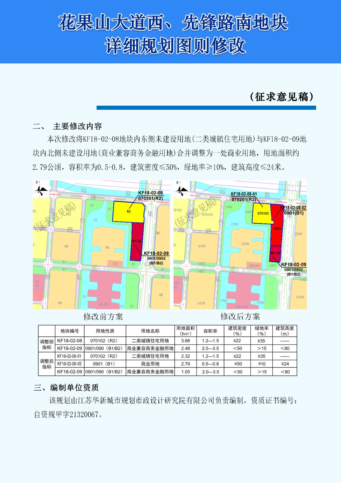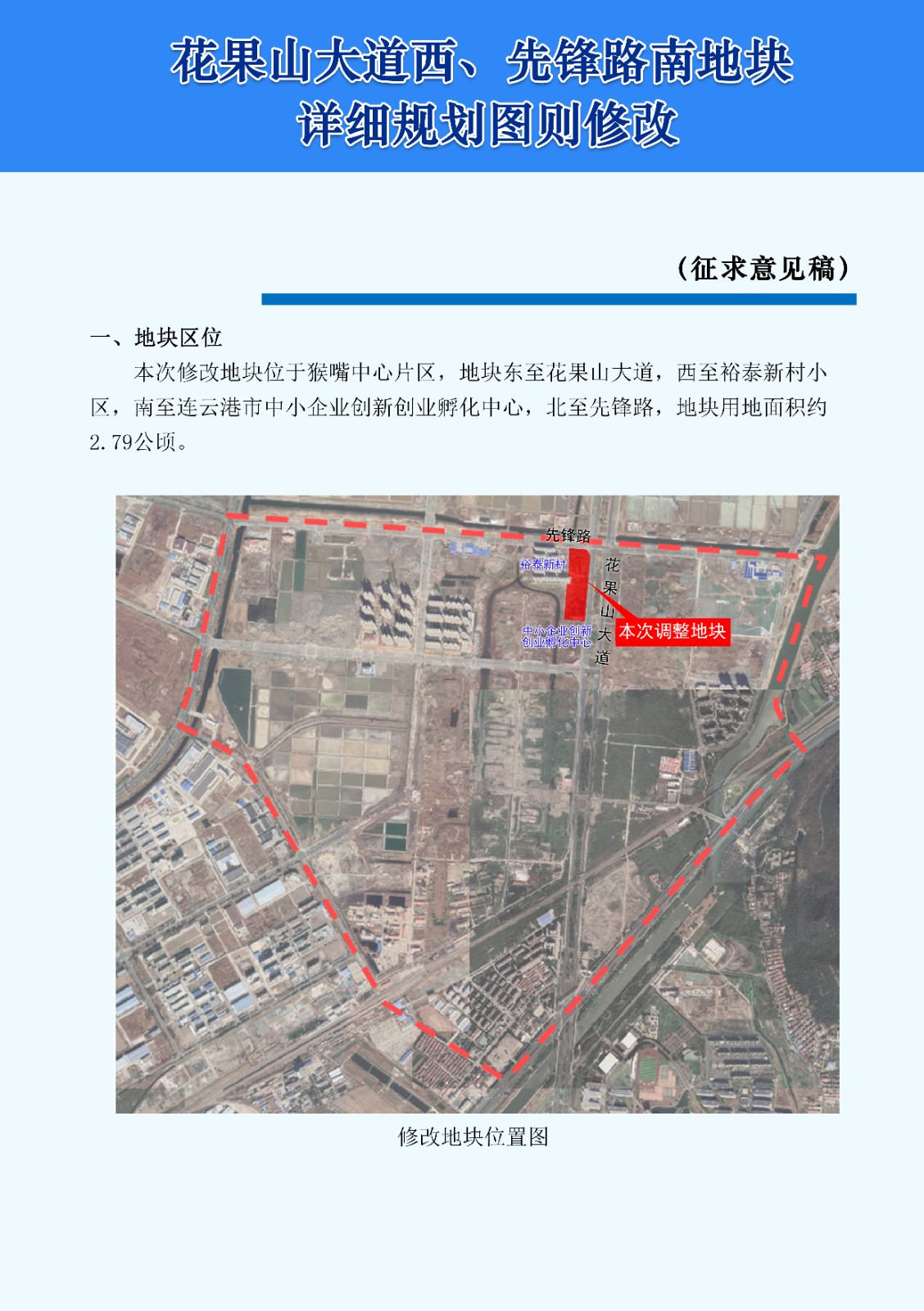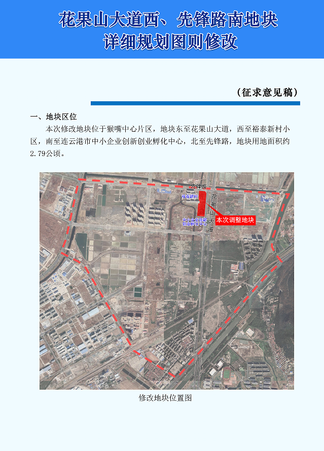 花果山大道西、先鋒路南地塊詳細規劃圖則修改征求意見稿